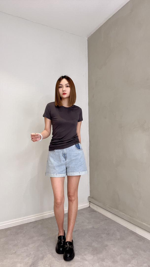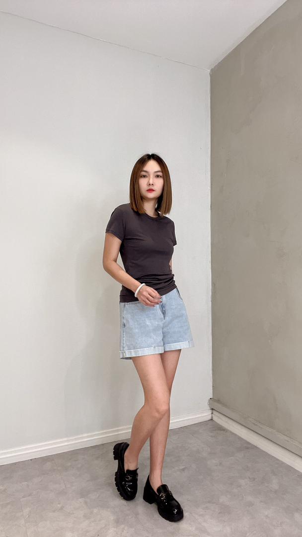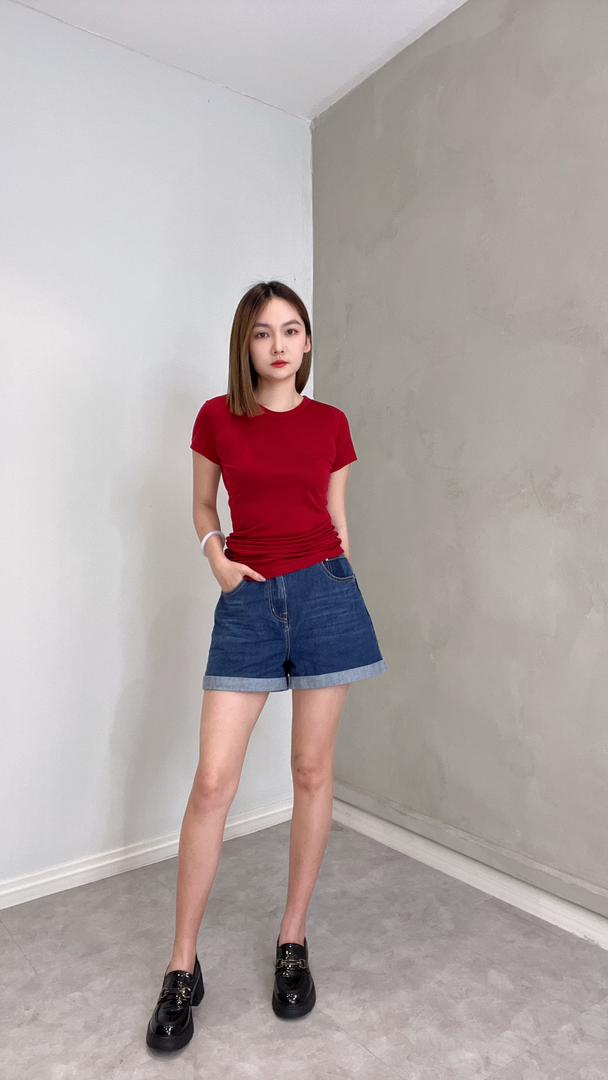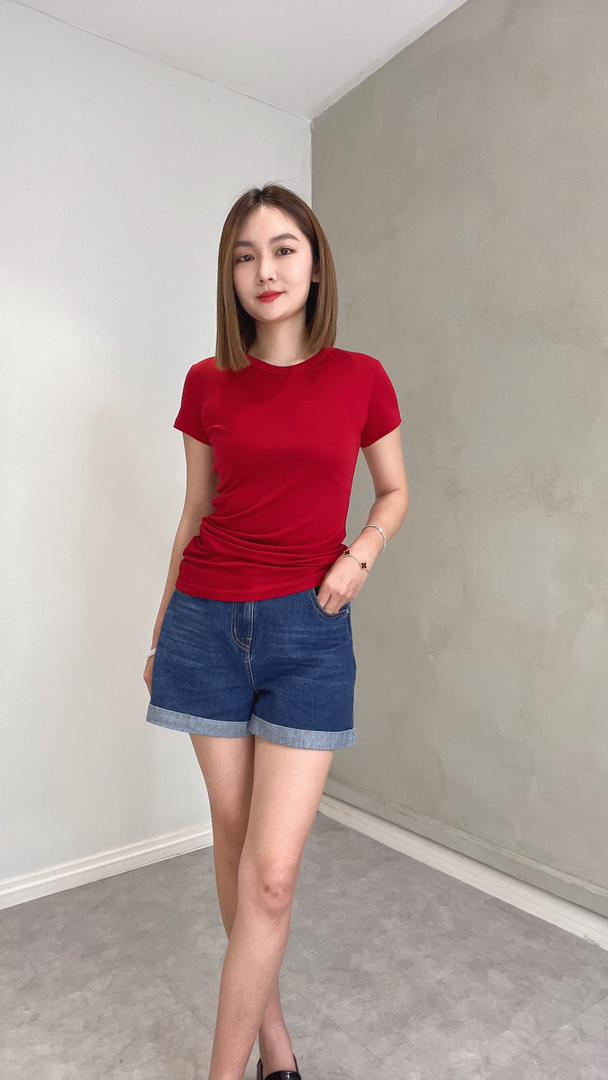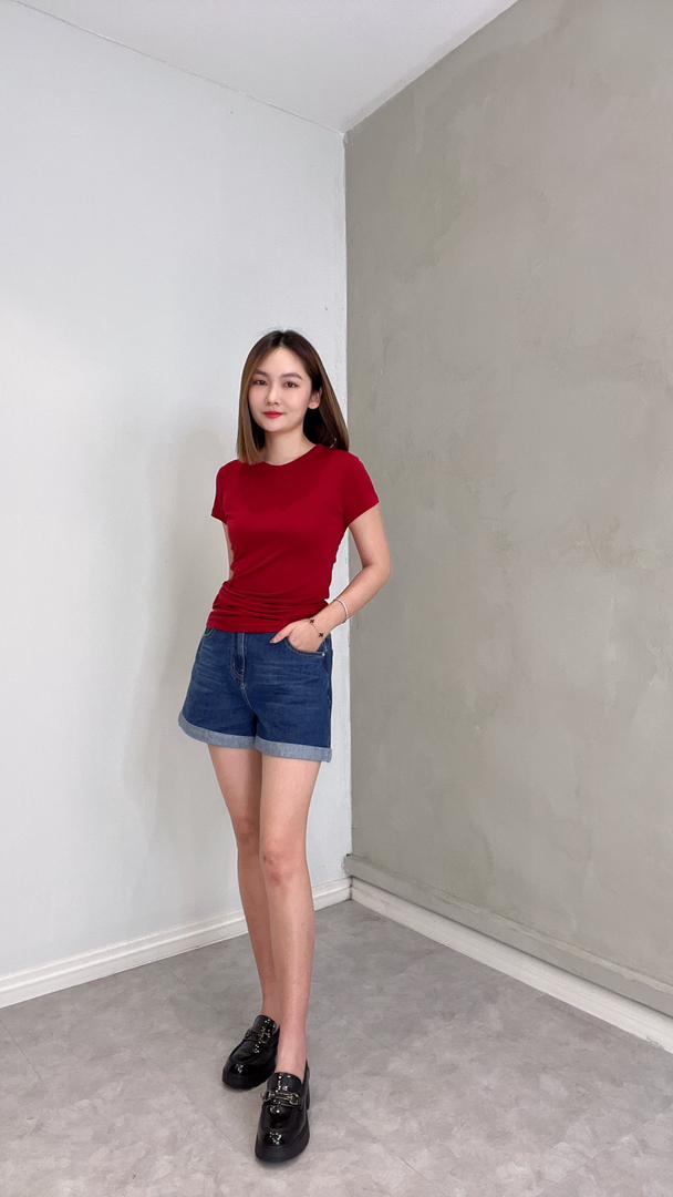 CB2616 SOLID SLIM CUT SHORT SLLV TOP